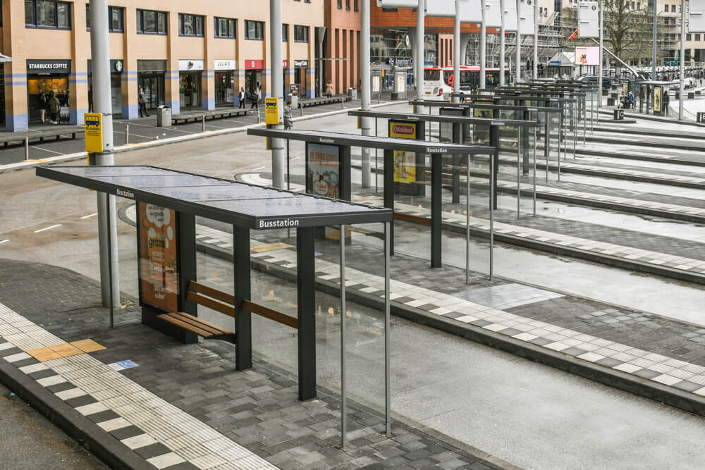 Met deze abri heeft OFN de aanbesteding van gemeente Amersfoort voor levering van 136 abri’s gewonnen. In Amersfoort zijn abri’s met sedumdaken, daken met PV-cellen en glasdaken toegepast.